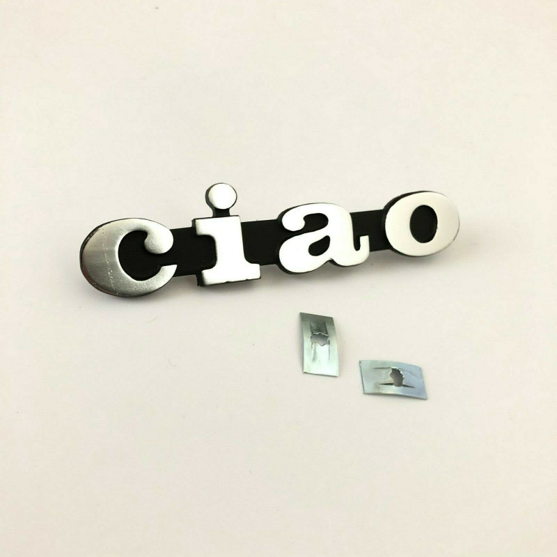 COPPIA DI ADESIVI PIAGGIO IN METALLO PER SERBATOIO + STEMMA PIAGGIO CIAO - SI - BRAVO - BOXER ECC