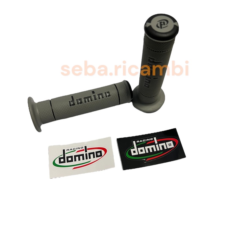 Coppia di manopole originali Domino, colore GRIGIO/NERO, adatto a tutti i modelli di Piaggio Ciao Si Bravo Boxer ecc ma anche scooter moto ciclomotori vari.