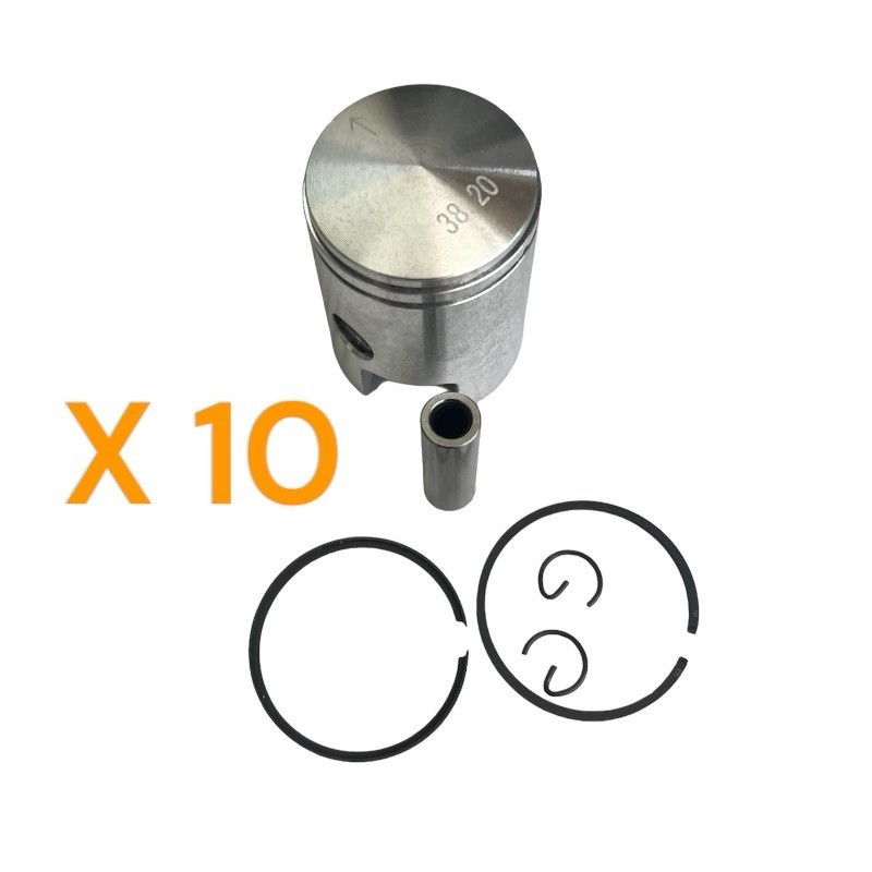 X 10 Pistone completo di fasce, seeger, spinotto da 10, misura pistone per cilindro originale da 38,2. per ciclomotore Piaggio Ciao Si Bravo Boxer Grillo Boss Gilera Eco Cba.