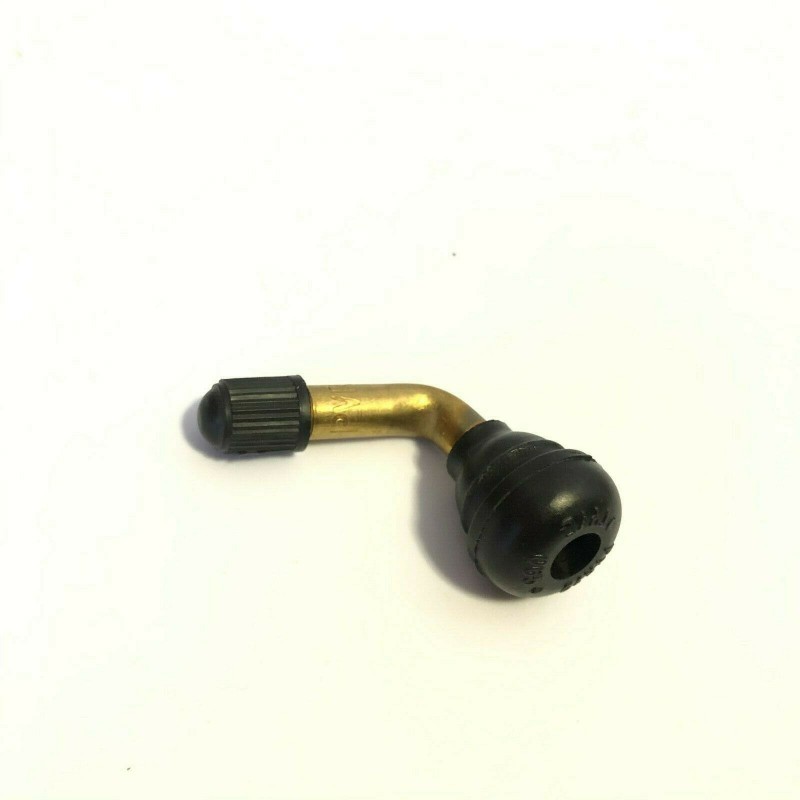 Valvola piegata a 90 gradi in gomma per cerchi tubeless moto e scooter vari applicazioni con interno removibile.